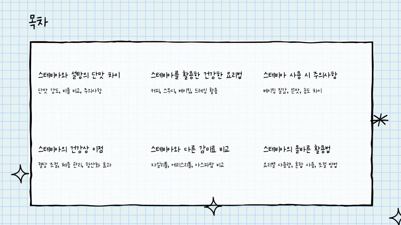 - 설탕 대신 스테비아 사용법: 정확한 비율과 주의할 점 목차