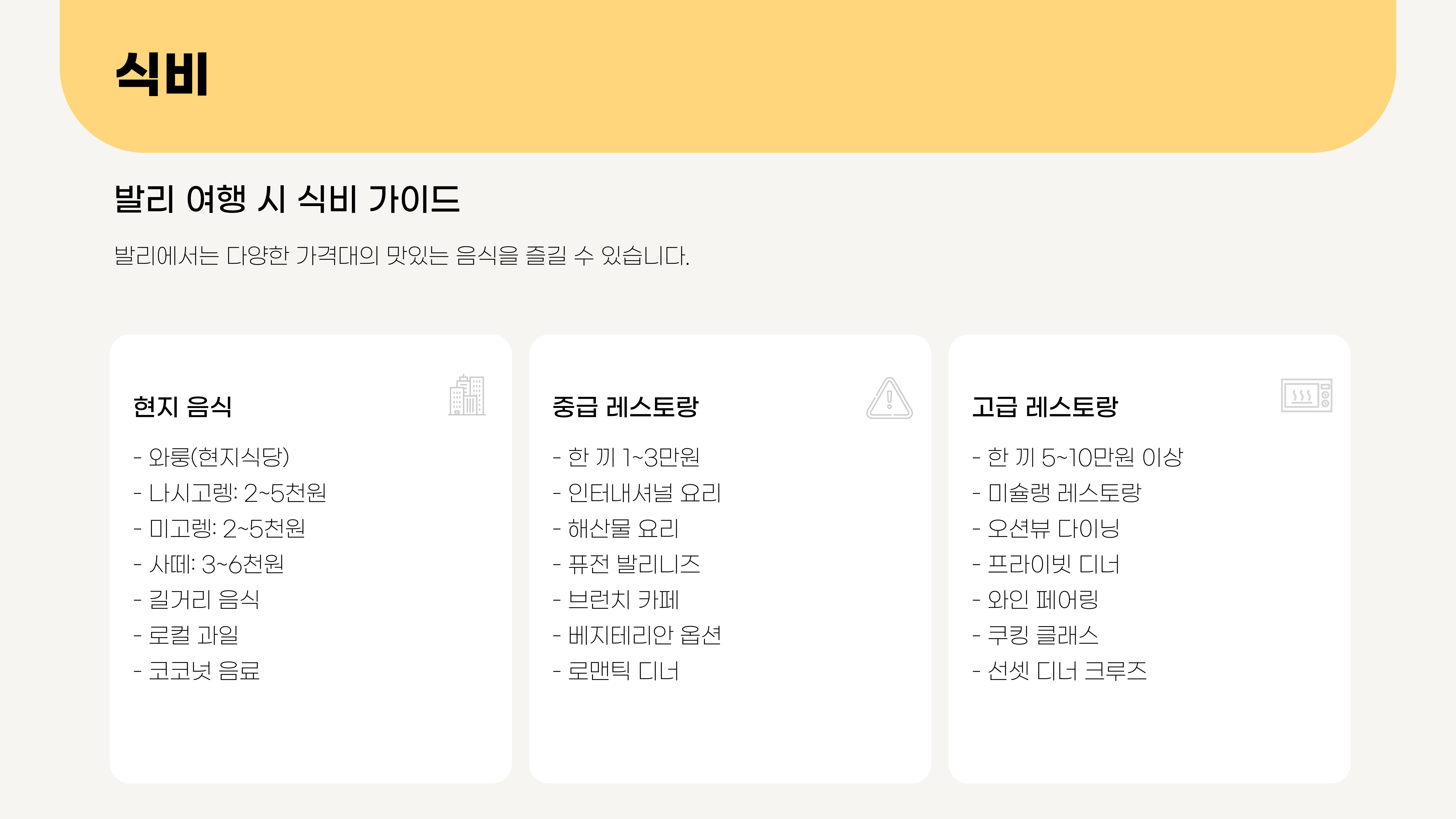 발리는 저예산 여행부터 럭셔리 여행까지 다양한 스타일에 맞는 여행 경비를 제공하는 매력적인 여행지입니다. 철저한 예산 계획과 준비를 통해 발리에서의 시간을 최대한 즐길 수 있습니다. 자신만의 여행 스타일에 맞는 계획을 세워 잊지 못할 추억을 만들어 보세요.