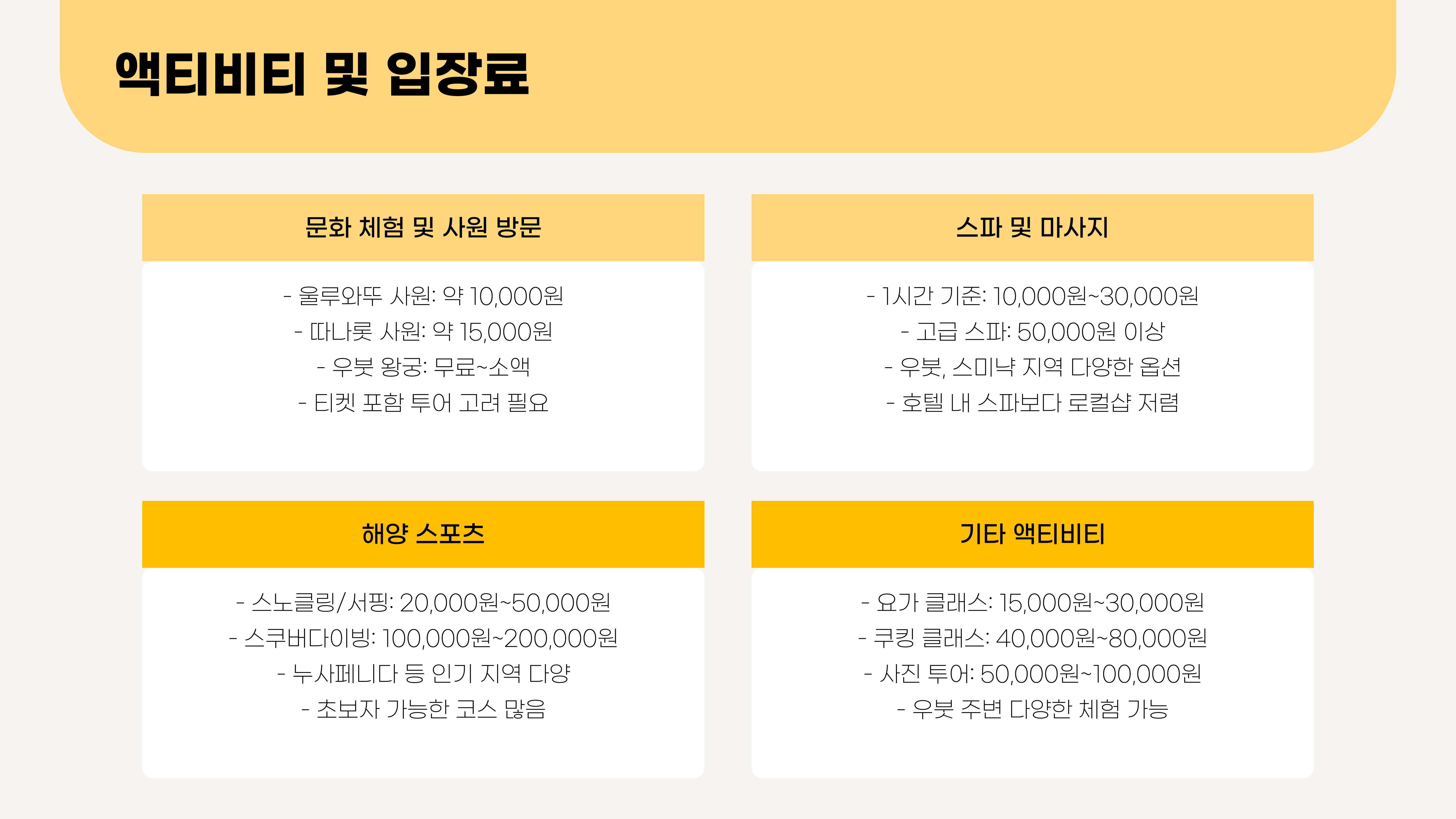 - 문화 체험 및 해양 스포츠 추가