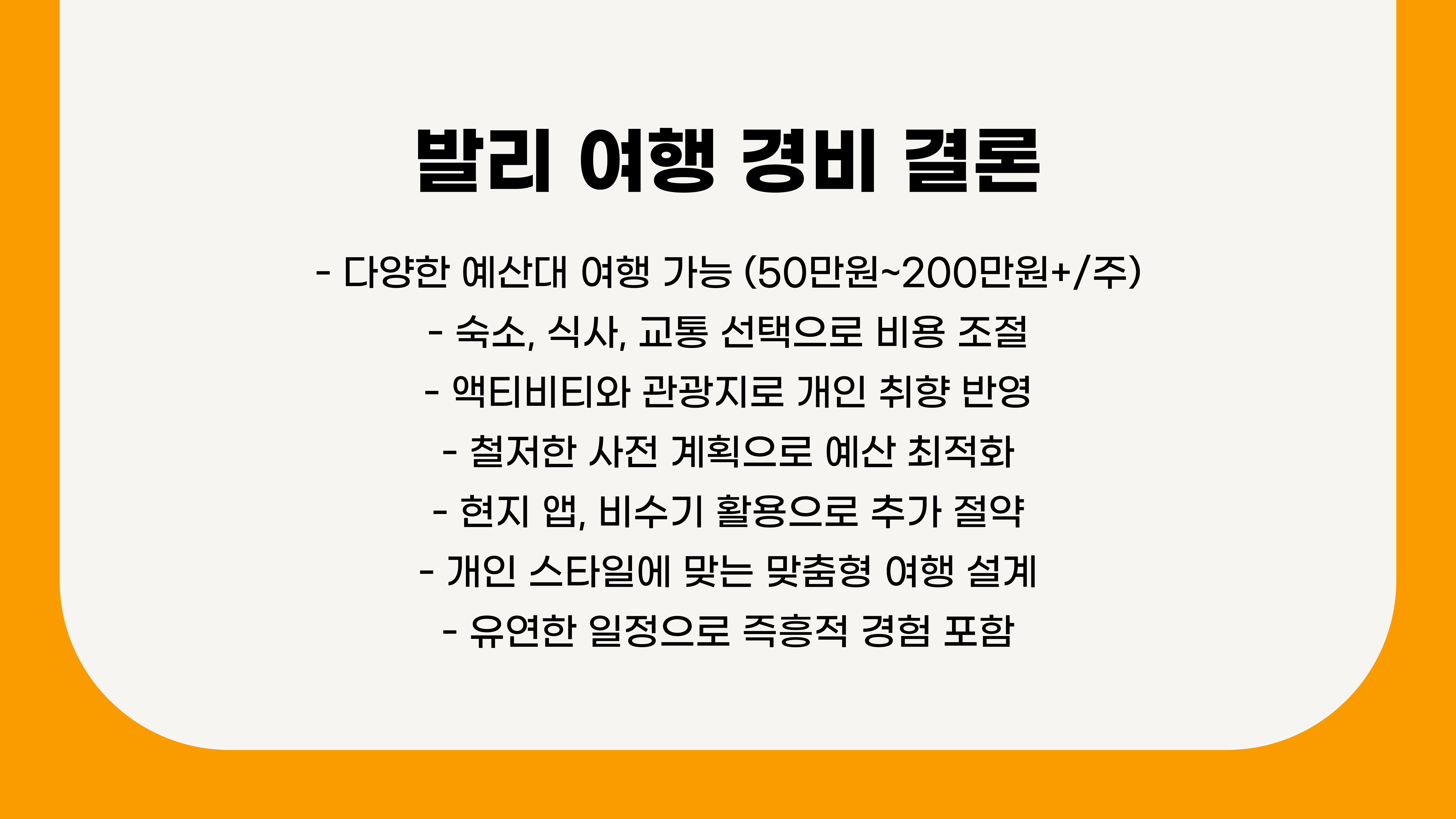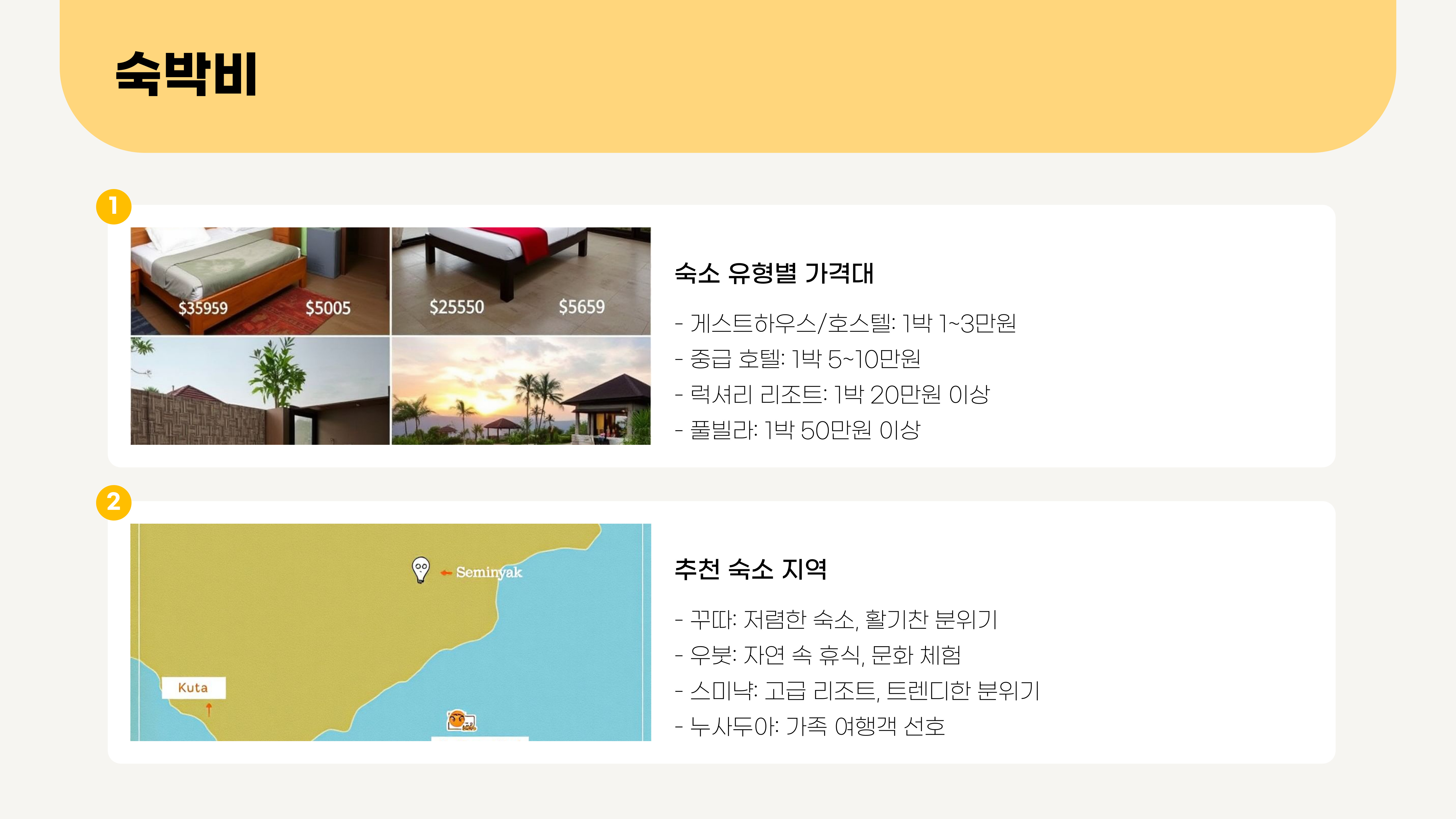 1. 발리 여행 경비 주요 항목