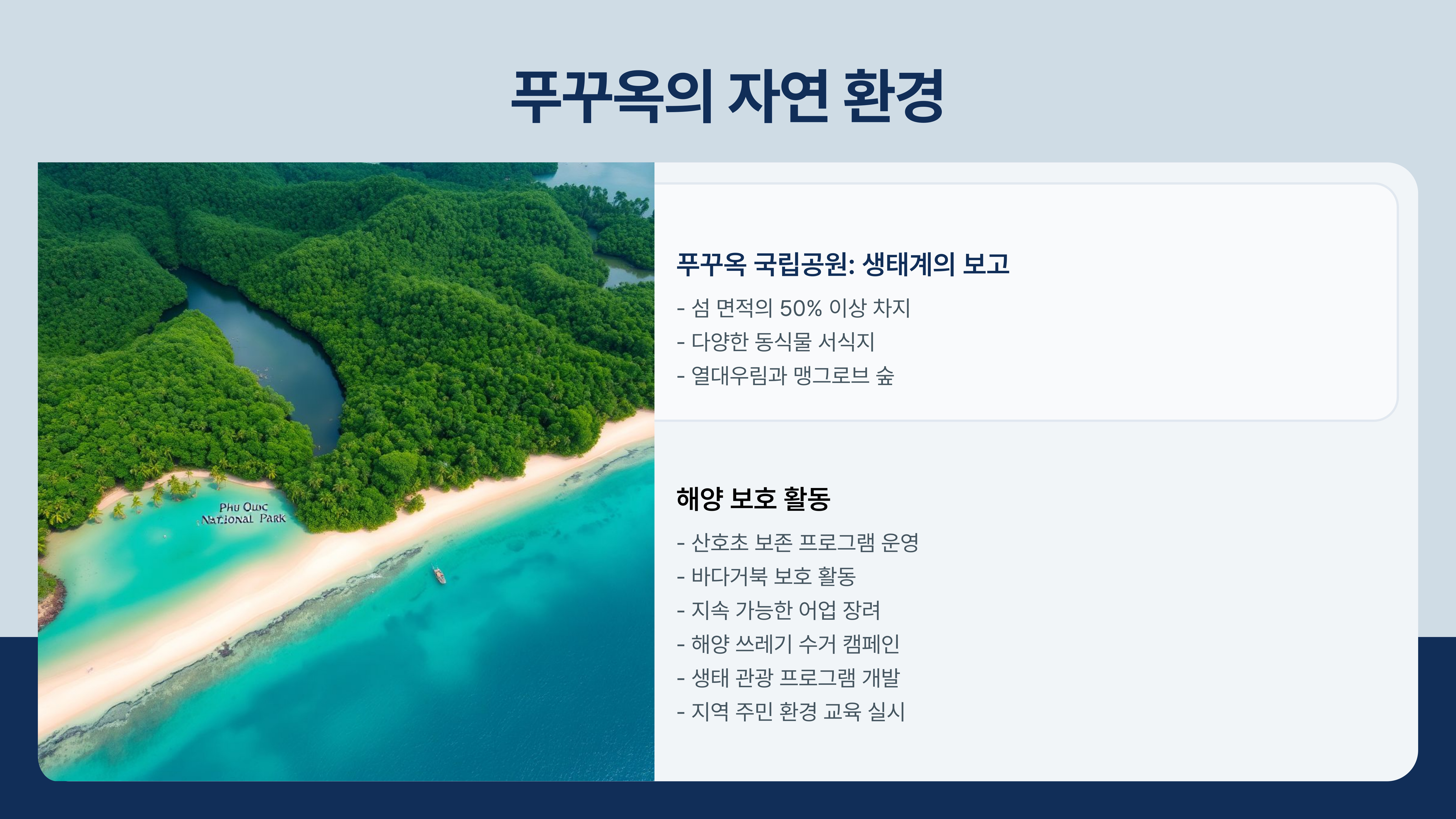 - 푸꾸옥 국립공원 – 다양한 생태계를 보호하는 자연 공원, 트레킹 가능