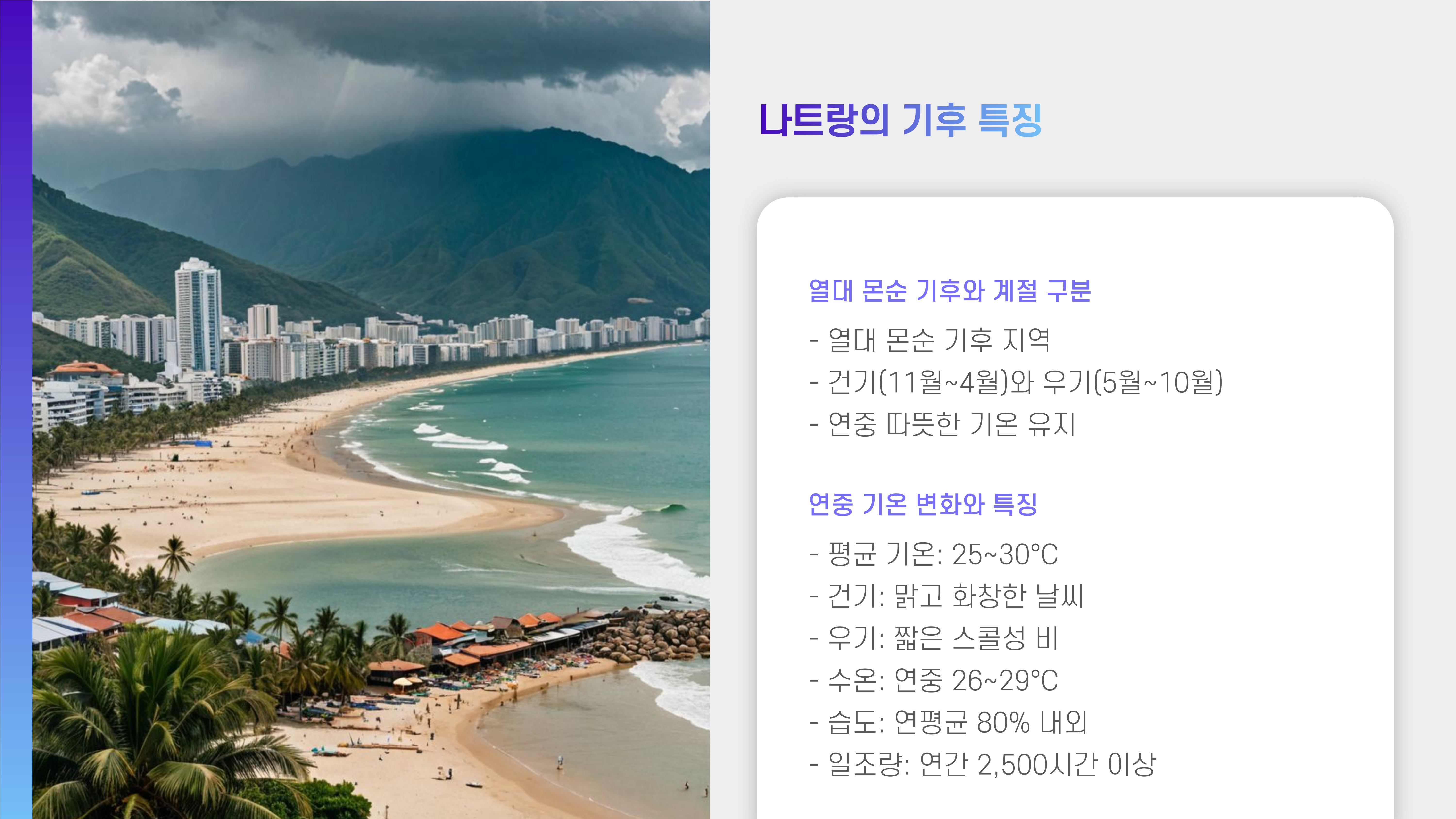 여행은 새로운 경험과 감정을 선사하며, 우리 삶에 색다른 즐거움을 더해줍니다. 특히, 아름다운 해변과 풍부한 문화가 공존하는 베트남 나트랑은 전 세계 여행자들에게 매력적인 휴양지로 손꼽힙니다. 하지만 최적의 시기에 방문해야 나트랑의 진정한 매력을 만끽할 수 있습니다. 이 글에서는 나트랑 여행하기 좋은 계절을 분석하고, 완벽한 여행을 계획하는 데 필요한 정보를 제공합니다.