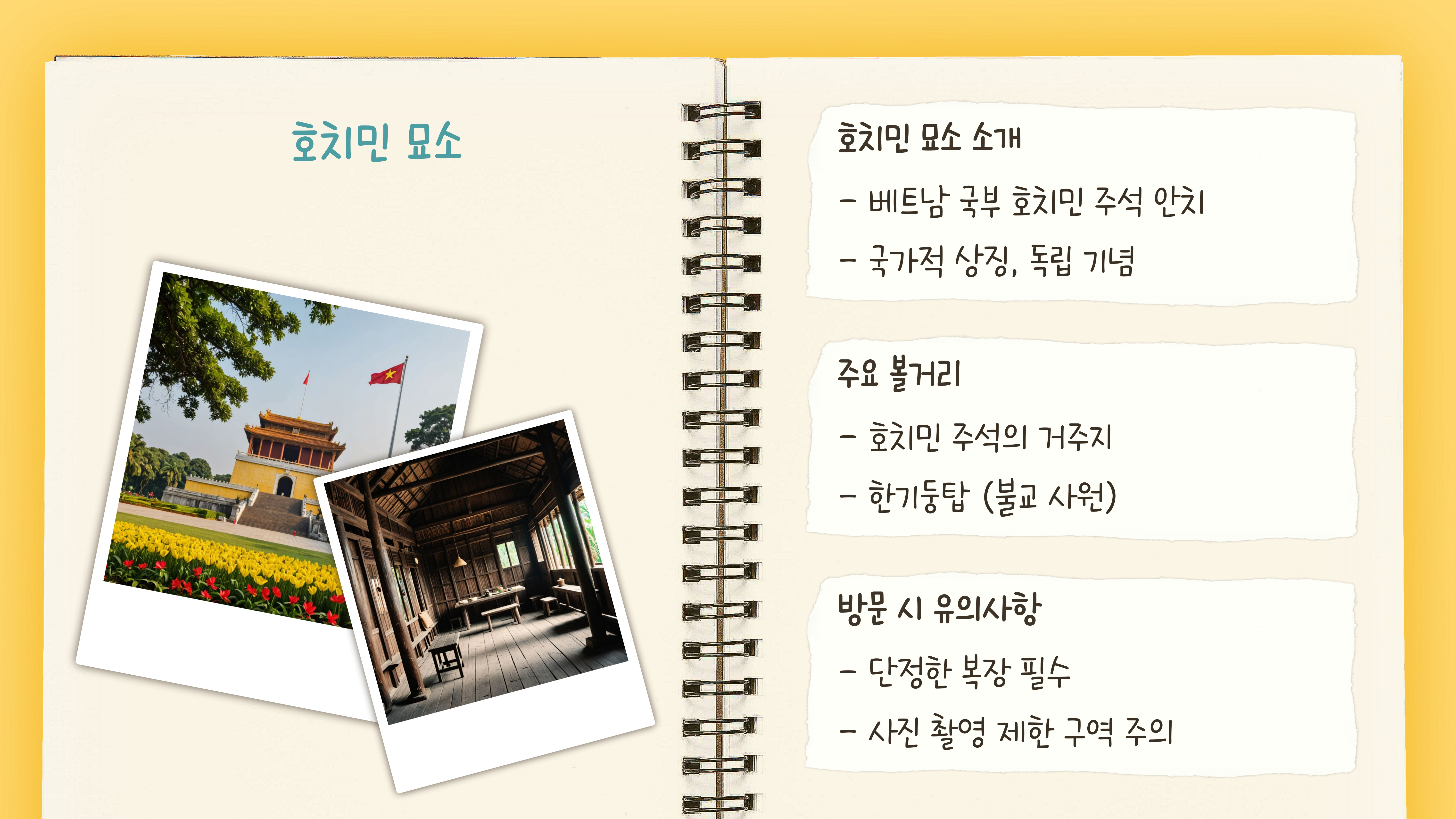 베트남의 국부 호치민 주석이 안치된 장소로, 베트남의 역사와 독립을 기념하는 국가적 상징입니다.