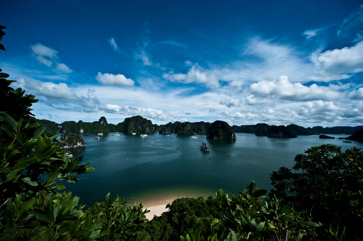 유네스코 세계유산으로 지정된 하롱베이는 에메랄드빛 바다 위에 솟아오른 석회암 섬들이 장관을 이루는 곳입니다.