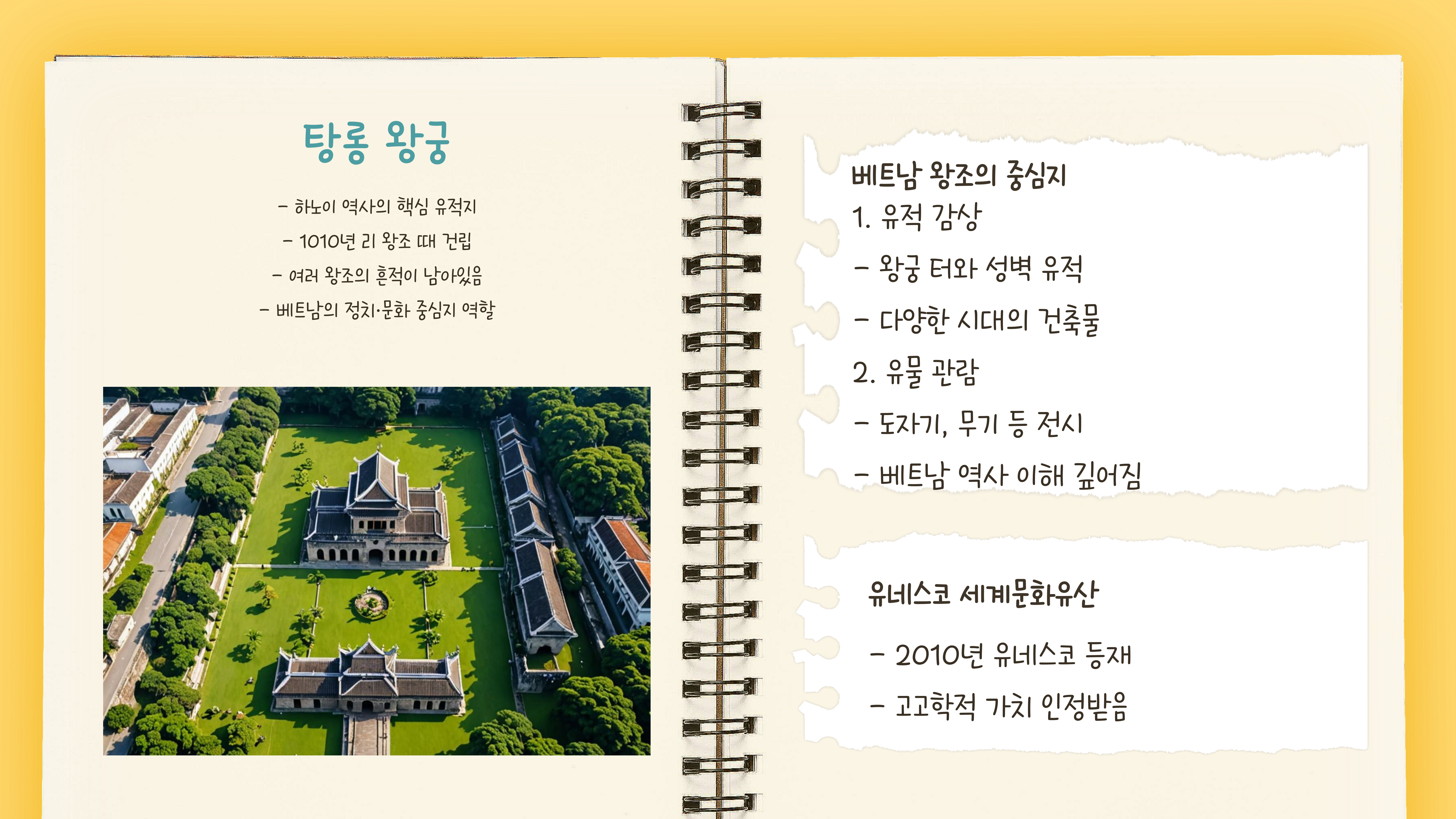 유네스코 세계문화유산으로 등재된 베트남 왕조의 중심지로, 하노이의 역사를 깊이 이해할 수 있는 곳입니다.