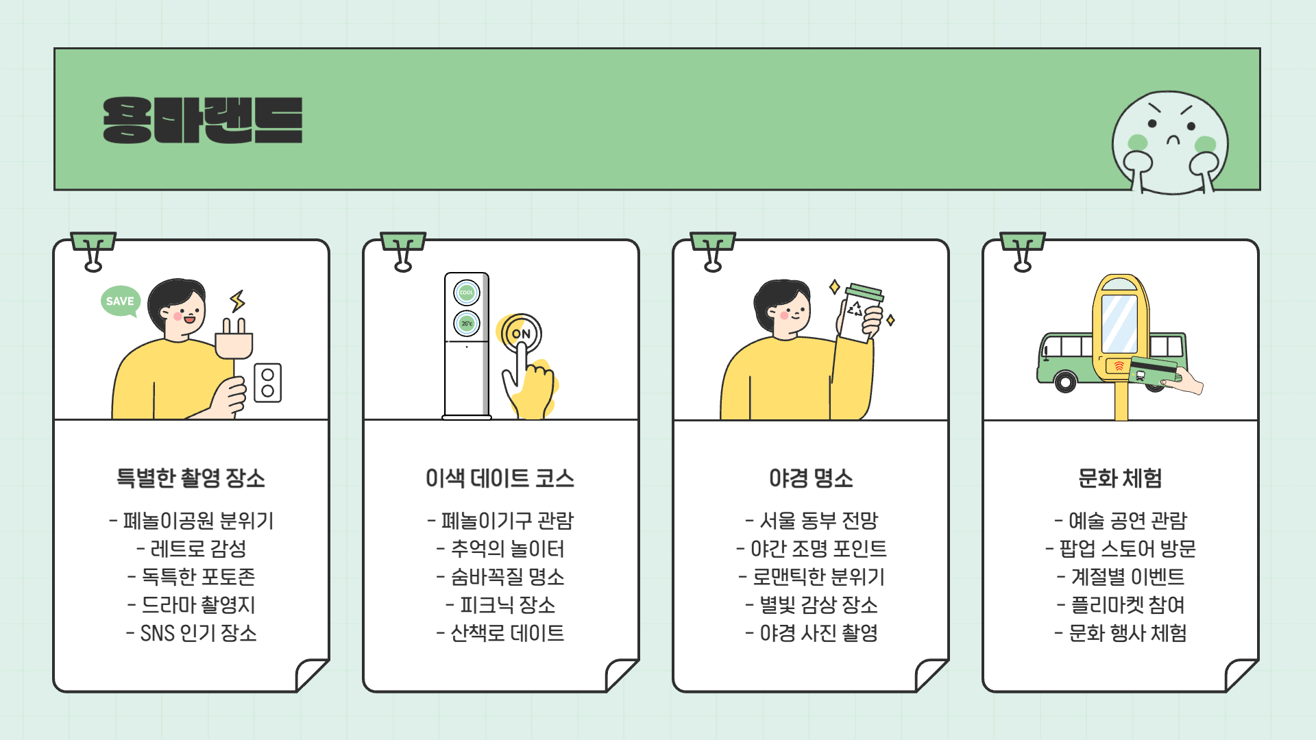 - 용마랜드: 다양한 놀이기구와 즐길 거리가 많아 신나는 데이트를 원하시는 분들에게 적합합니다.